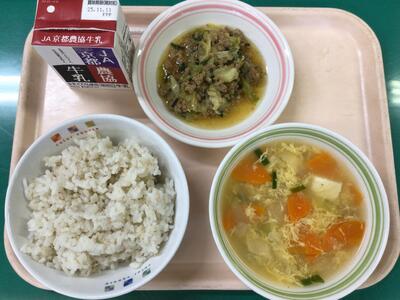 今日のカレーには3年生が育てた万願寺甘とうが入っています。そして「万願寺カレー」を考えてくれました。