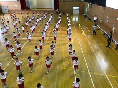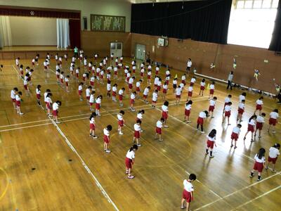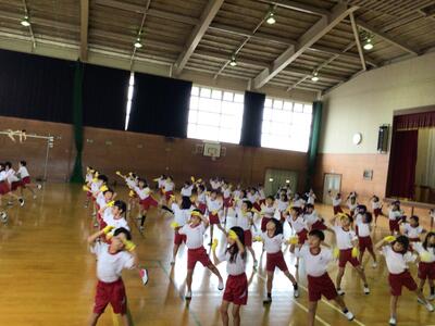 今日は外での練習ができなかったので体育館いっぱいに広がってダンスの練習です。本番のように各組の手袋をはめて踊ります。なんだか気持ちが整います。「集合」の合図があるとさすが2年生、1年生のお手本になって素早く並びます。動きもどんどん上手になります。素敵なダンスの仕上がりに期待が膨らみます。