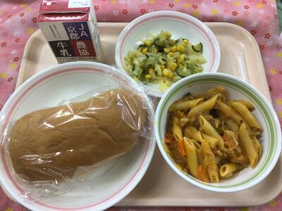 新メニューのペンネが登場しました。地場産の万願寺甘とうも入っています。