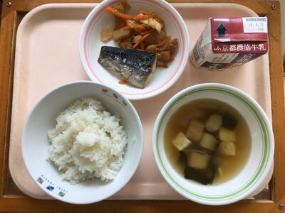 「和食の日」献立です。澄まし汁にはカツオ節と昆布をふんだんに使用しダシを取りました。校舎の3階までダシのいい香りが届いていました。