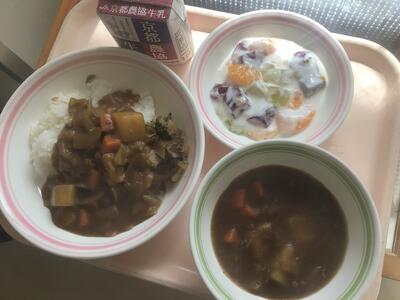 カレーでした。今日はハヤシルウを少しまぜて甘めのカレールウが出来ました。