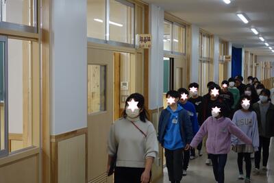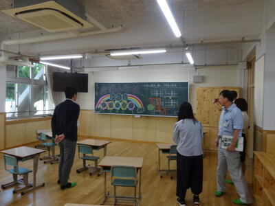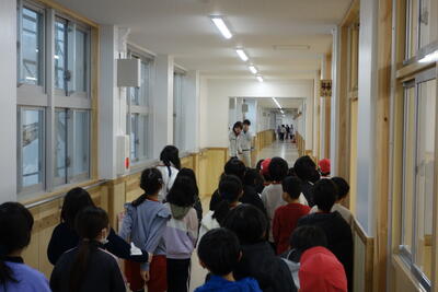 今日はいよいよ新しくなった教室に3、5、6年生が引越しします。朝一番にそれぞれの学年が内覧をしてから一日が始まりました。内覧には市役所から資産マネジメント、教育総務からもそれぞれ見に来ていただきました。